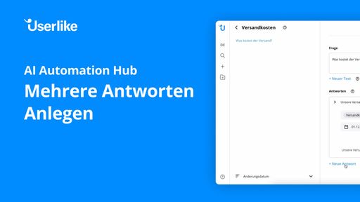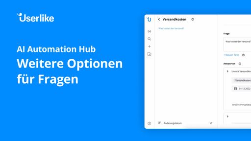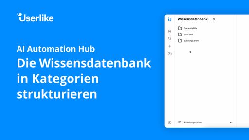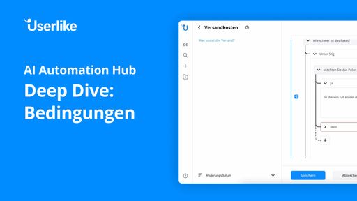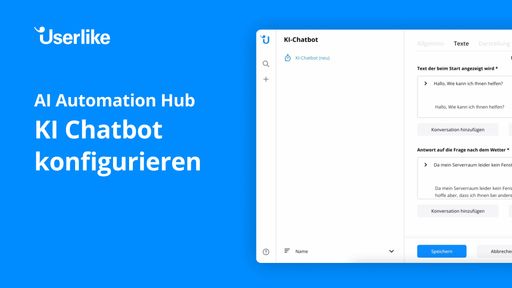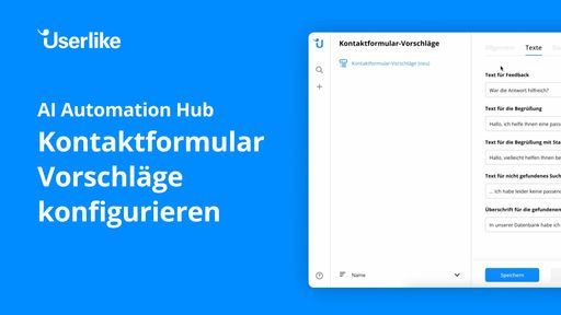 Das Video auf der Startseite zeigt Ihnen, wie der AI Automation Hub in Userlike aussieht und welche Module enthalten sind.