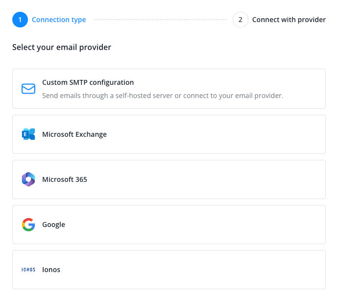Choose your email provider or a custom SMTP configuration.